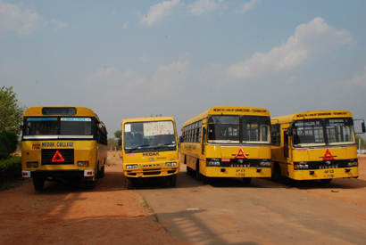 Arrangements are also made for transport of the students by involving APSRTC. Three college buses are run exclusively for transport of students. The students are picked up at various places from the twin cities. on their way to the college and are dropped right in the campus. They are picked up from the college in their return trip.